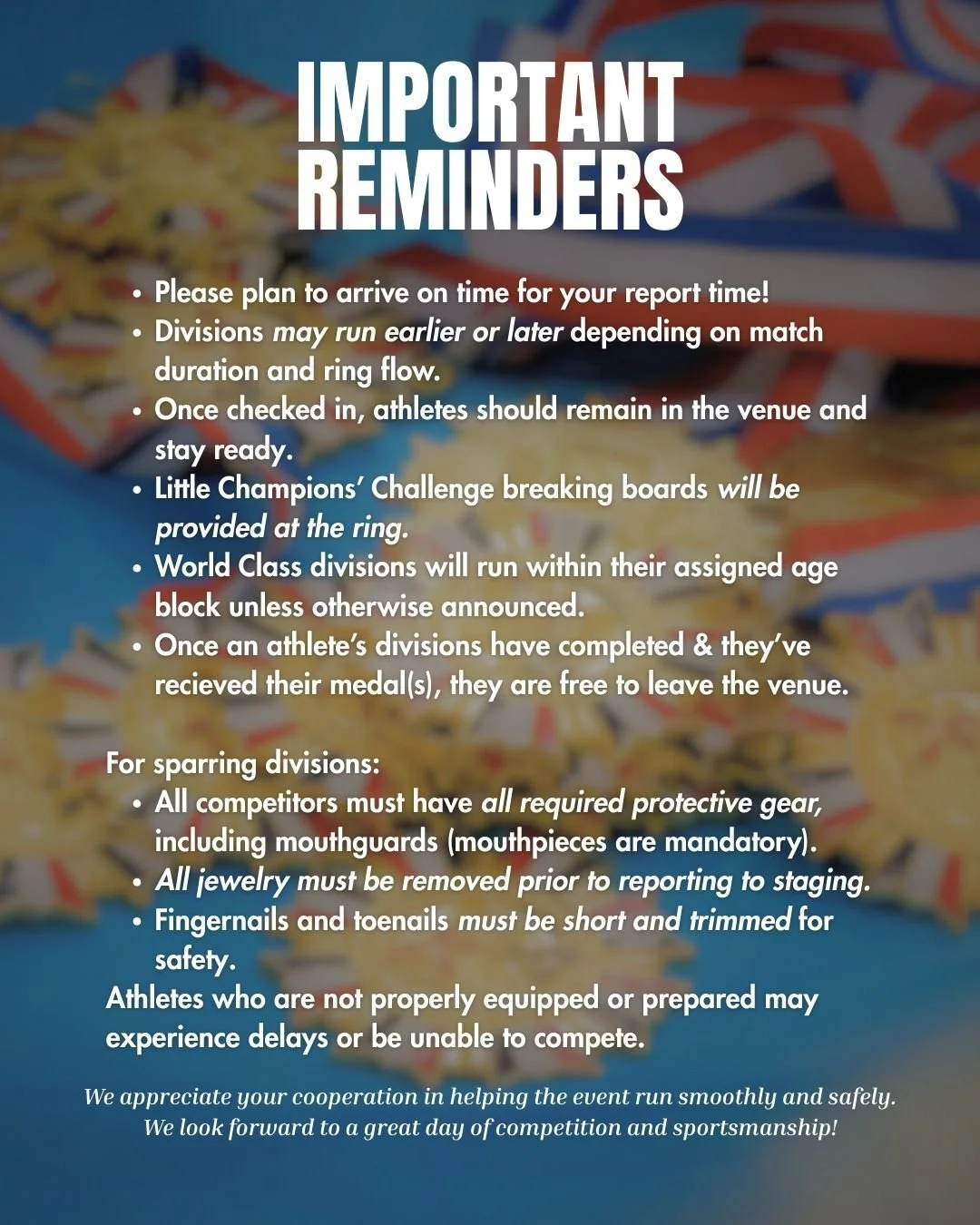 The Tae Ryong Cup is the most organized event in Taekwondo. You will be surrounded by people you know and be in a positive environment to make new friends who are “like-minded” and share the same concerns and goals. Confidence breeds confidence. If you are surrounded by people who believe in themselves, you too will find yourself to believe in! Likewise, if you are able to show your true confidence to others, you will have inspired them to find their own. So, if you are nervous about trying, remember we are all in this together!